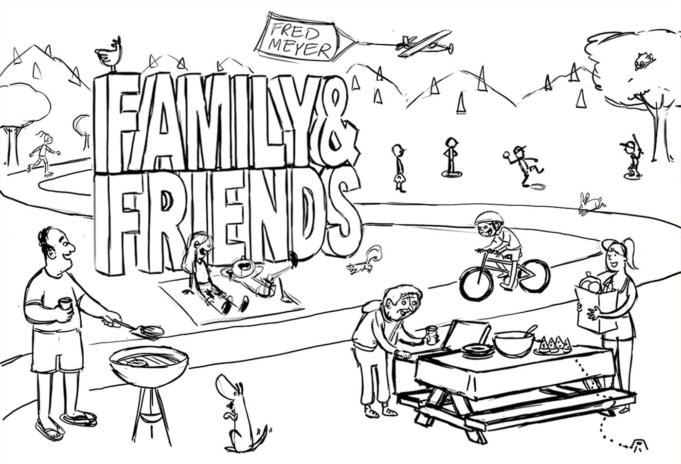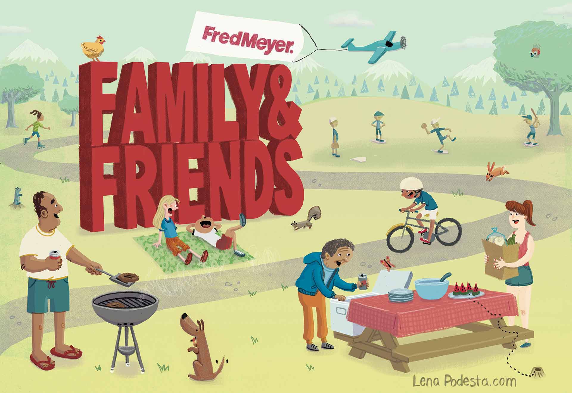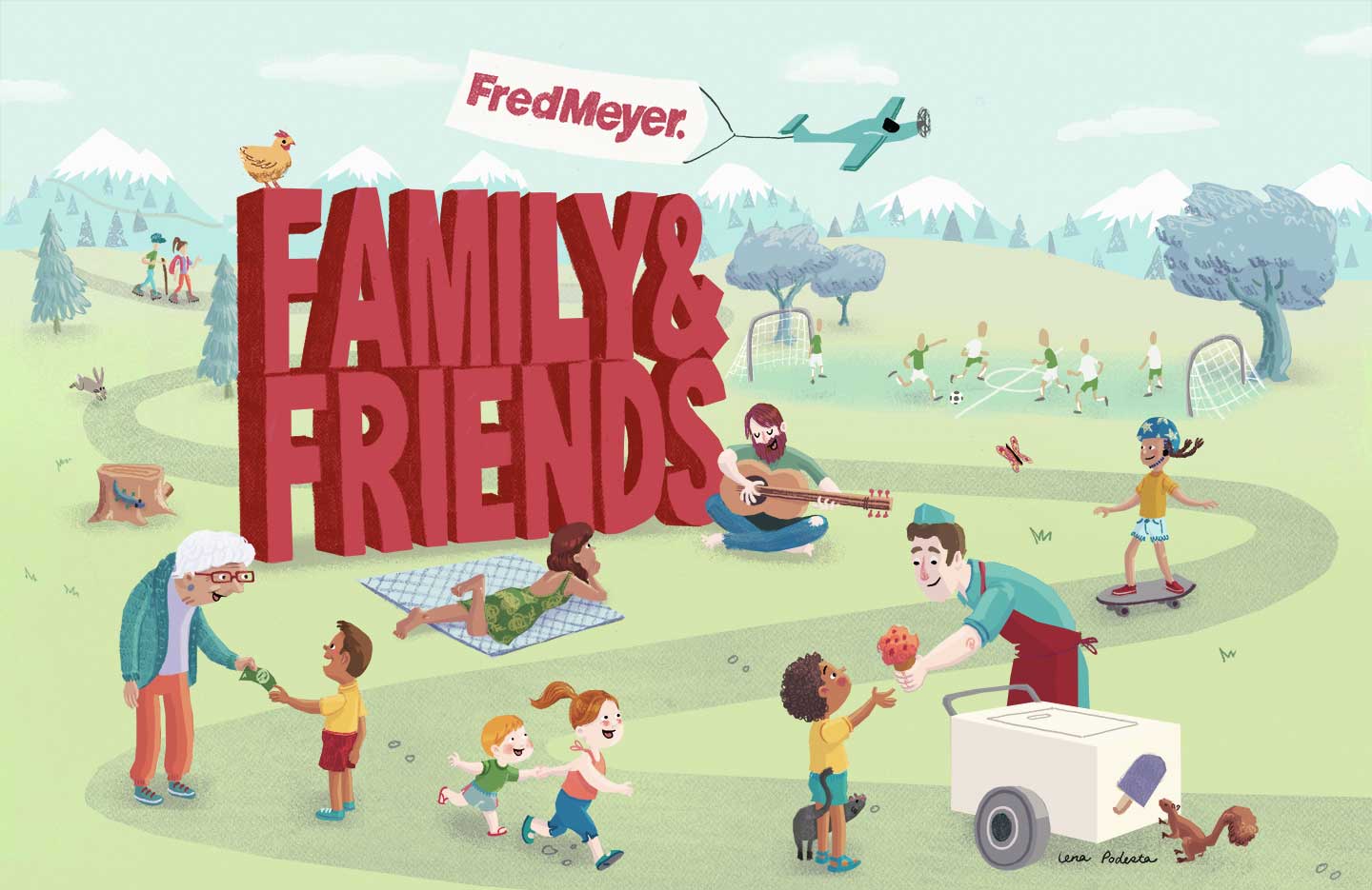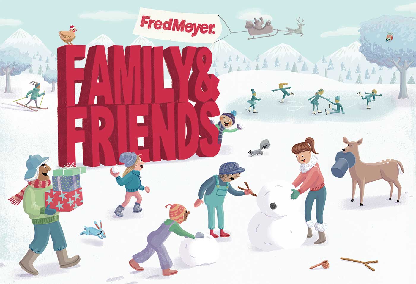 Seasonal flyers for Kroger grocery stores’ Family & Friends program.