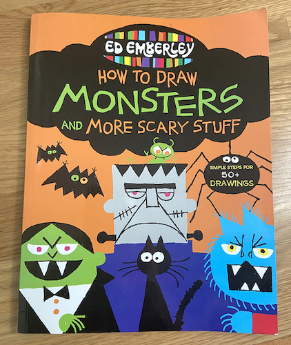 We used Ed Emberley’s book Ed Emberley’s How to Draw Monsters and More Scary Stuff for the inspiration for the haunted house. But How to Draw Scary Monsters is jam packed with instructions for how to draw tons of other spooky creatures too. He shows you how to draw a witch, a cat, a bat, and a spider to name just a few.