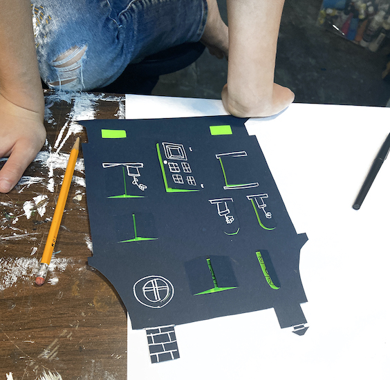 - Using your top sheet, cut out doors and windows with scissors or a craft knife.