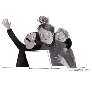 More boring, but also true bio: Lena Podesta has been working as an artist in the animation industry and as an illustrator for more than two decades. Her work has included picture book illustration, editorial illustration, character development, design for animation, directing, story boarding, and character animation. In addition to writing and illustrating picture books, she is currently an animator on The Simpsons.